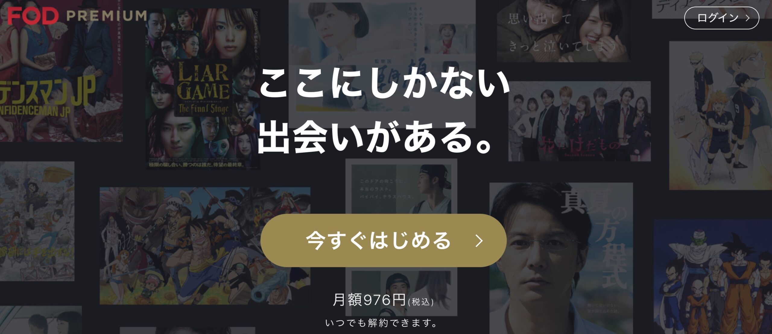 月額976円で、FOD独自のコンテンツも楽しめるため、フジ系のドラマやアニメが好きな方にはうってつけ。