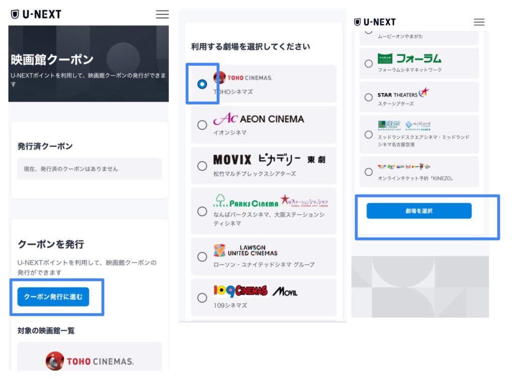 映画引換クーポンの発行手順